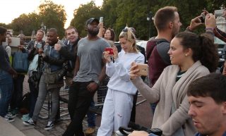 Justin Bieber is seen here busking and serenading Hayley Baldwin on the Queen Victoria Monumnent Outside Buckingham Palace in London (Photo: Profimedia)