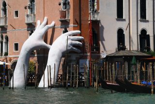 Venice, May 14th, 2017. The 57th Venice Biennale of Contemporary Art opened yesterday. Visitors from all the world crowd the pavilions. Title : Support by Lorenzo Quinn. Credit: Ferdinando Piezzi/Alamy Live News