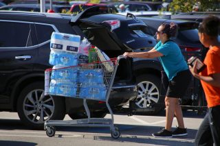 A shopper at the Costco in Apex, NC prepares to unload a cart of water, toilet paper and other essentials in preparation for Hurricane Florence to hit the area (Photo: Profimedia)