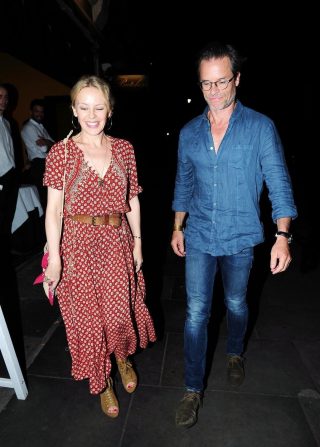 *PREMIUM-EXCLUSIVE* MUST AGREE FEE BEFORE USE-NOT AVAILABLE FOR ONLINE USE UNTIL 22:00PM UK TIME ON 20/08/2017*Australian Singer Kylie Minogue and actor Guy Pearce leaving Spanish restaurant Cambio de