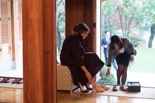 U.S first lady Melania Trump changes shoes before joining Korean First Lady Kim Jung-sook for tea at the Blue House November 7, 2017 in Seoul, South Korea (Photo: Profimedia)