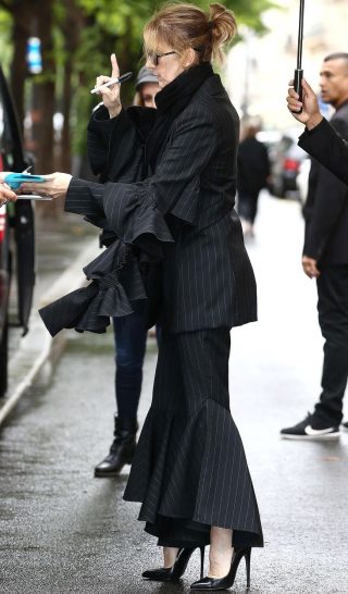 Celine Dion signs autographs for fans outside her hotel Royal Monceau in Paris.