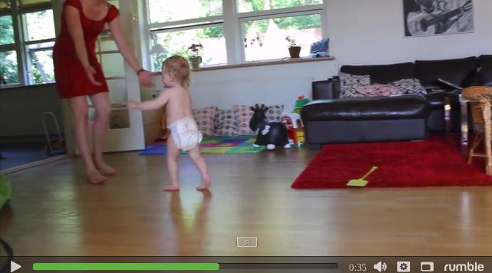 Footage shows a cheeky little baby moving its happy feet to the music, flaunting its incredible dance moves for the camera. There is no doubt that the baby is born a natural! Moving to the rhythm comes as a piece of cake, as it shakes the booty on the floor.